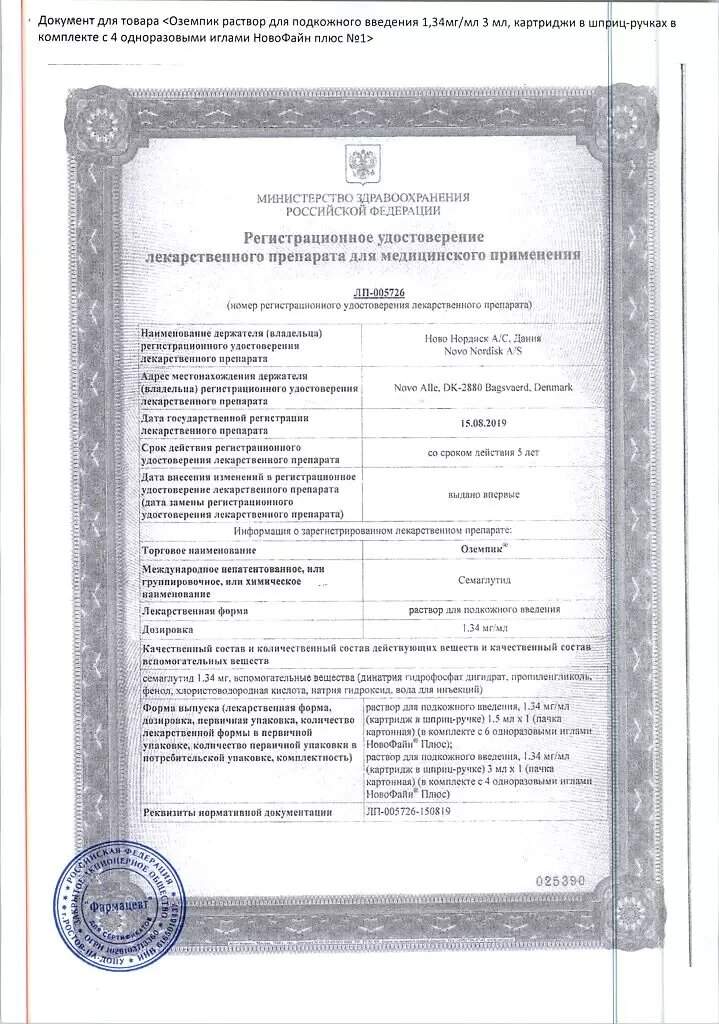 Форма выпуска, упаковка и состав препарата Оземпик