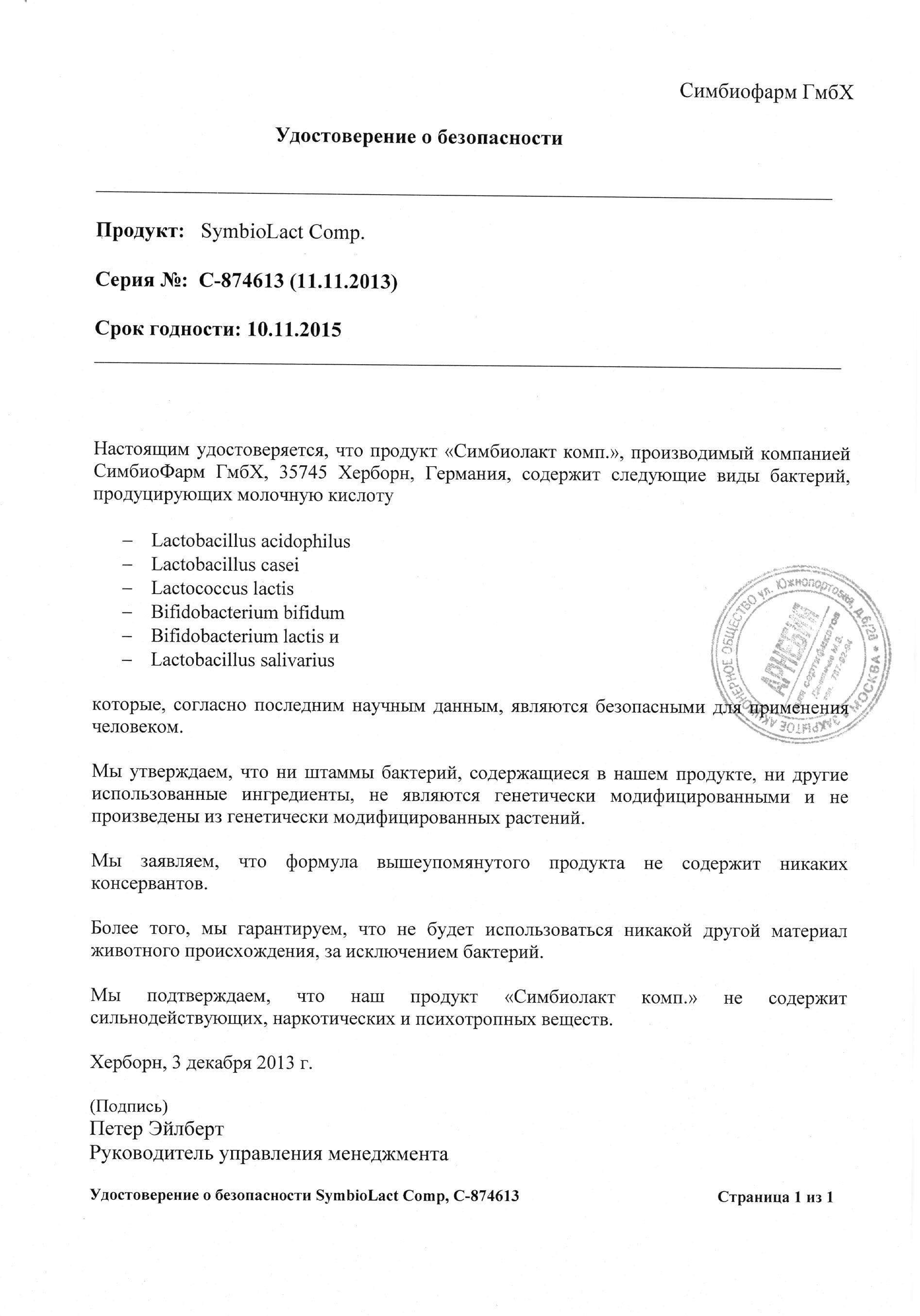 Особые указания. Не следует растворять SymbioLact в горячей воде. В растворенном виде хранить не более 20 минут. Курс лечения БАДа Симбиолакт Композитум составляет от 4 до 8 недель.