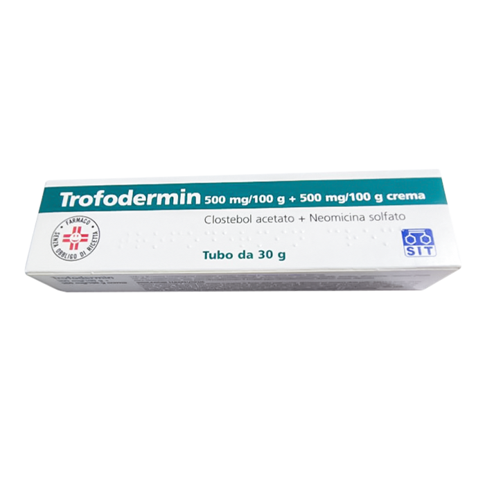 Трофодермин - это крем для кожи, который действует благодаря свойствам активных компонентов клостебола ацетат и неомицина сульфат. Клостебола ацетат принадлежит к группе лекарств, называемых стероидами. Помогает заживлять кожные поражения. Неомицин сульфат - антибиотик. Он борется с кожными инфекциями, вызванными бактериями.