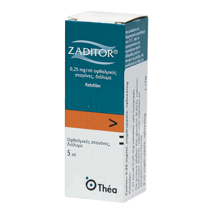 Задитен в форме глазных капель – противоаллергический препарат для местного применения. Задитен содержит кетотифен – вещество с выраженной антигистаминной и противоаллергической активностью, блокирующий Н1-рецепторы гистамина.