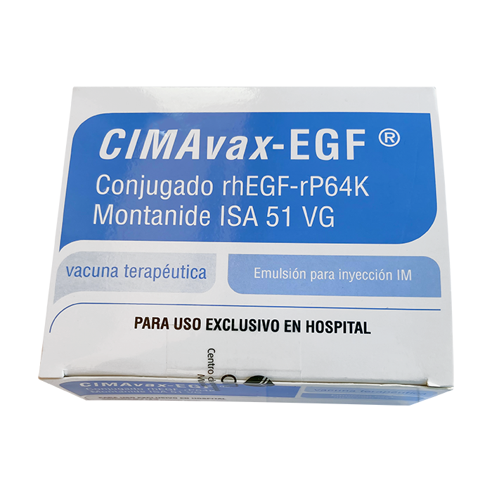 Во многих клинических исследованиях изучали применение ингибиторов EGF-R при лечении NSCLC. Вакцина Симавакс-EGF® содержит рекомбинантный человеческий EGF, полученный из дрожжевых клеток Saccharomyses cerevisiae, конъюгированный с белком-носителем P64k Neisseria meningitidis рекомбинантной природы и продуцируемый из клеток Escherichia coli и с Montanide ISA 51 VG в качестве адъюванта. Результаты пробных испытаний и клинических исследований II-III фазы с Симавакс-EGF® у взрослых пациентов на поздних стадиях NSCLC продемонстрировали эффективность этого нового препарата.