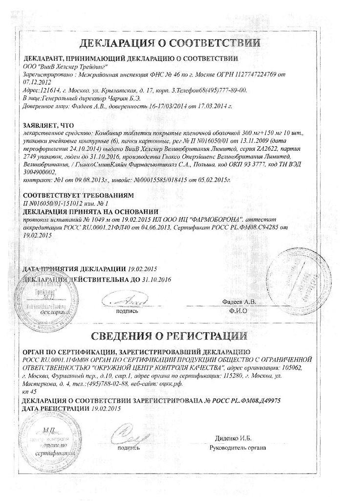 Инструкция по применению Комбивир 150мг/300мг таблетки №60